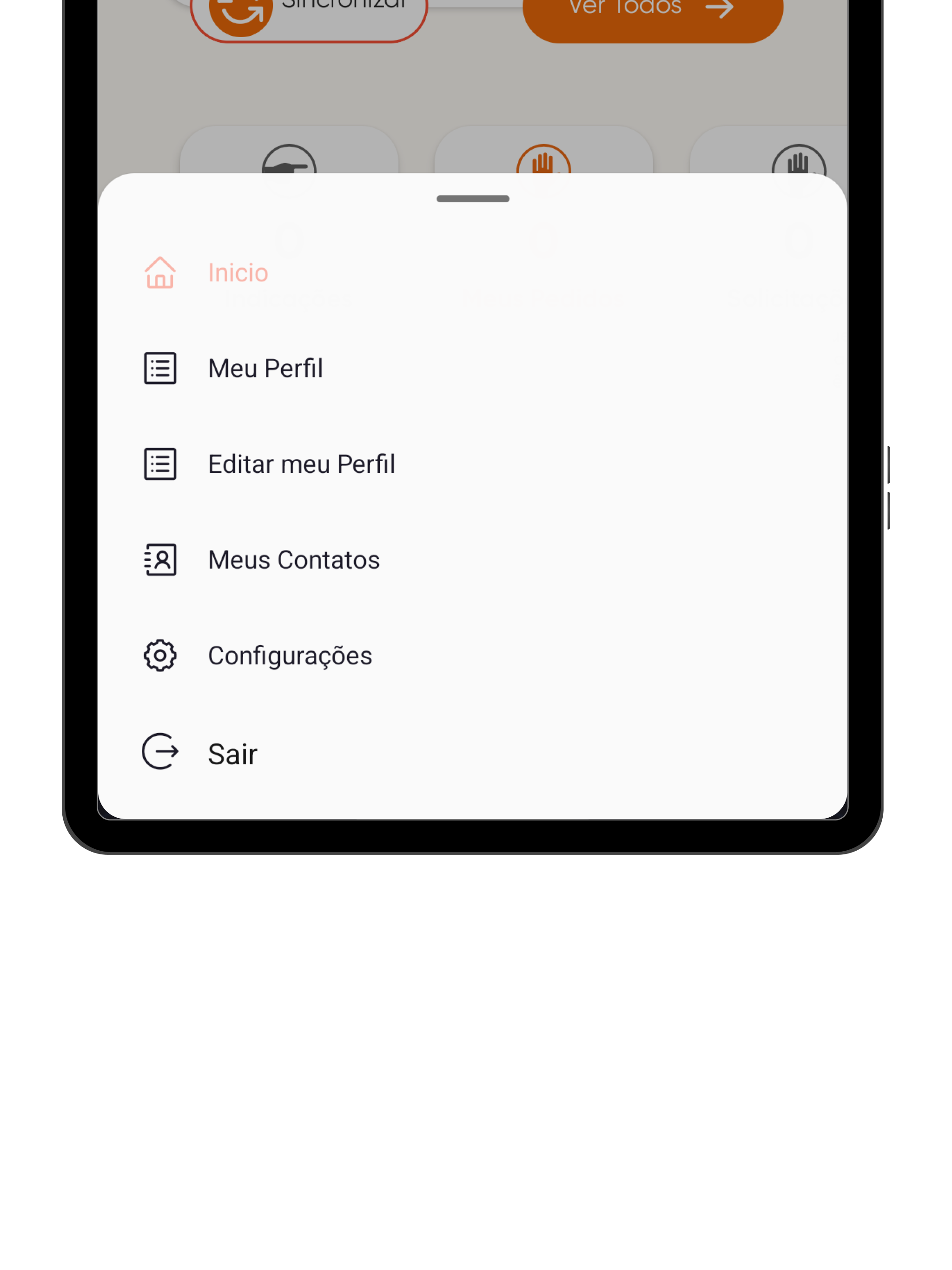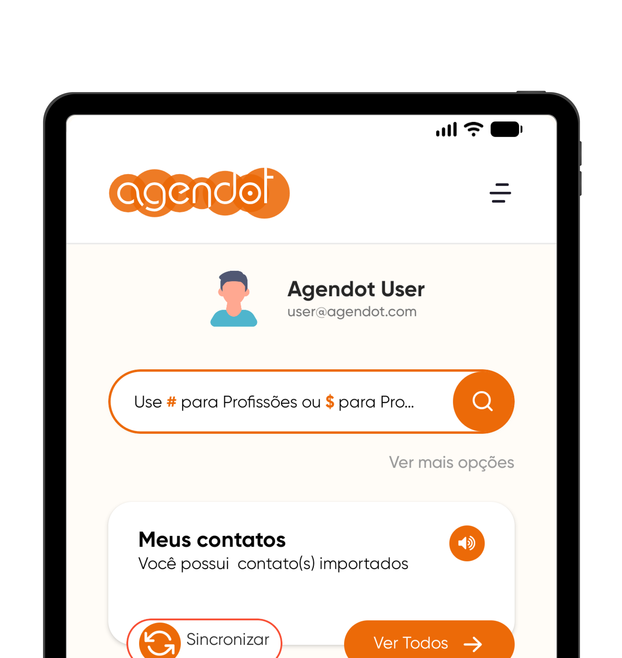 Na tela principal do Agendot, toque no ícone de menu localizado no canto superior direito. É através desse menu que você acessa as opções de conta, incluindo a função de excluir sua conta.